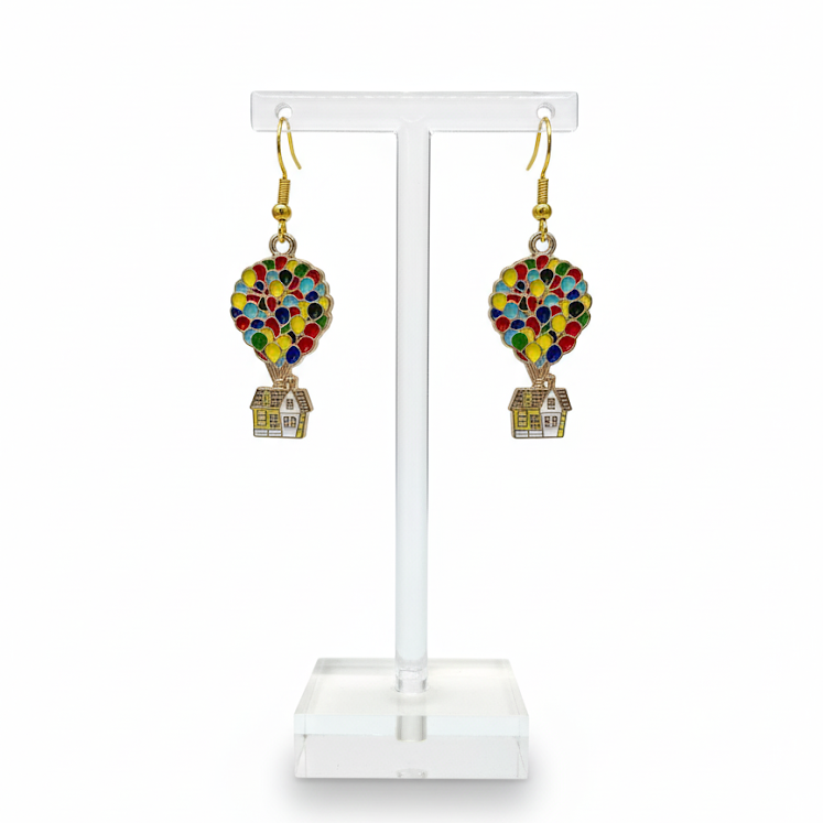 Los Aros Casa Flotante - Up son un encantador recordatorio de que las aventuras más grandes comienzan con un sueño y un poco de imaginación. Inspirados en la icónica casa elevada por globos de colores, estos aros transmiten ternura, alegría y la magia de una película que ha tocado corazones en todo el mundo. Ideales para quienes aman llevar un toque lúdico y nostálgico en su estilo.
