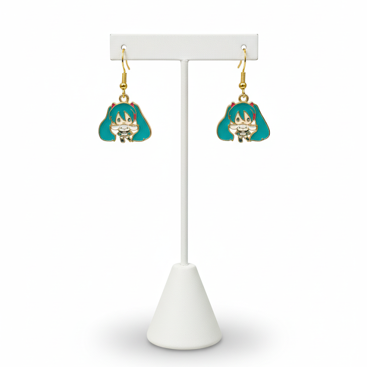 Los Aros Hatsune Miku de Vocaloid son el accesorio perfecto para quienes aman la música virtual y el estilo único de Miku. Con un diseño inspirado en sus icónicos colores y estilo, estos aros aportan un toque divertido y llamativo a cualquier outfit, permitiéndote mostrar tu pasión por el personaje de manera elegante y juguetona. Ideales para coleccionistas y fans del anime musical.