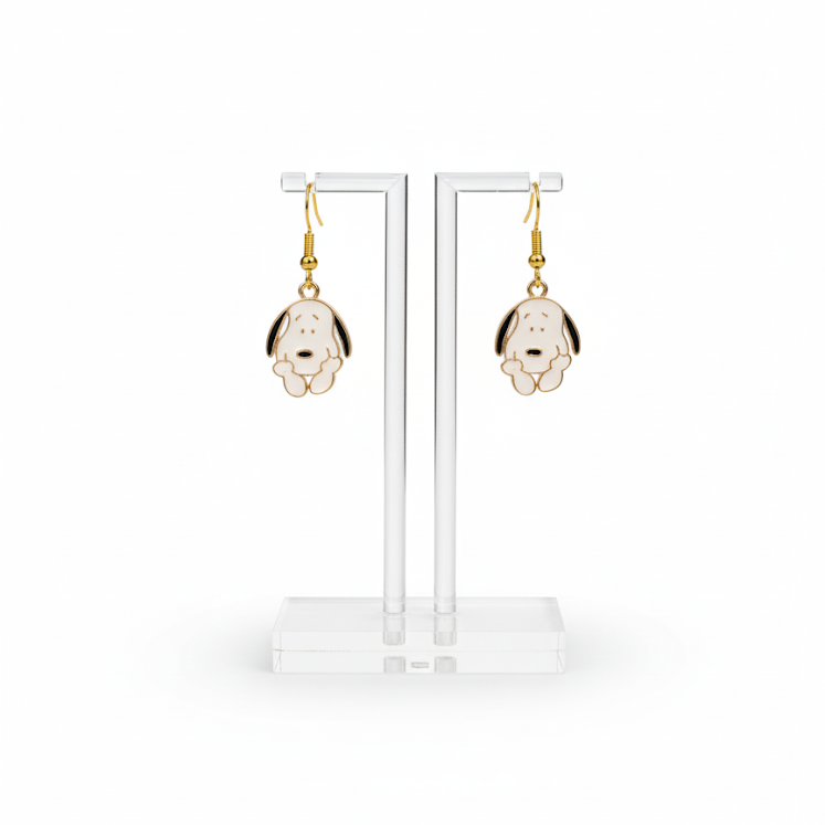 Lleva la ternura de Peanuts contigo con estos Aros Snoopy Sentado. Este diseño captura al adorable Snoopy en su pose más icónica, haciendo de estos aros un accesorio único y encantador para fanáticos de todas las edades. Ideales para complementar tu estilo diario o para regalar a alguien que ame los personajes clásicos de Peanuts, estos aros se convertirán en un detalle memorable en cualquier ocasión.