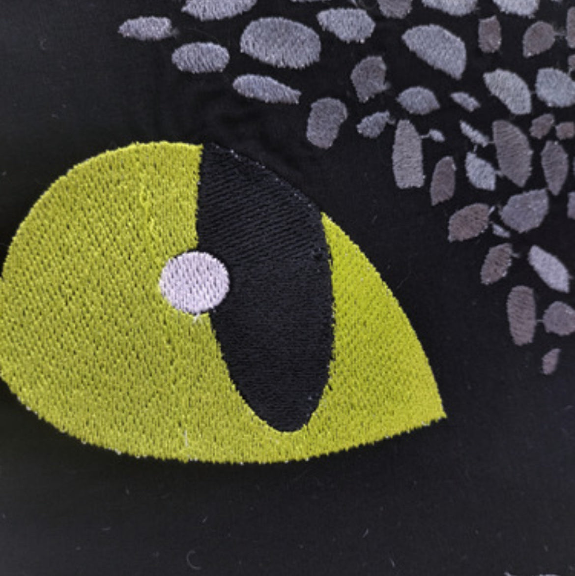Diseño: bordado con la figura de Chimuelo de Cómo Entrenar a tu Dragón.