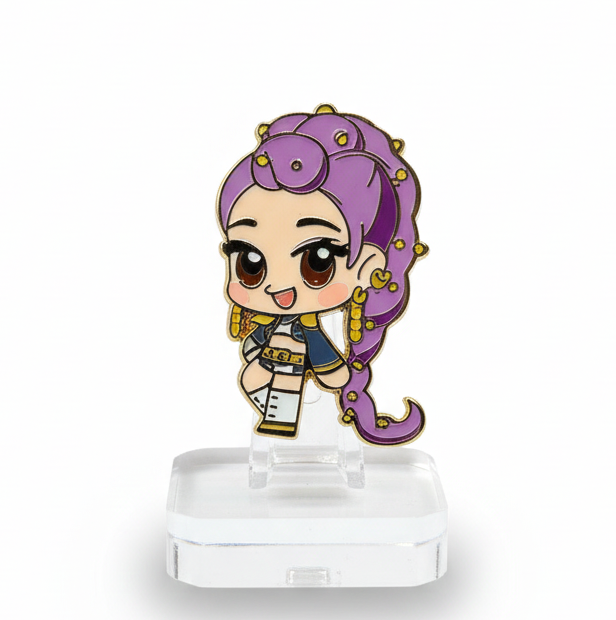 Estos pines de Huntrix de Las Guerreras del Kpop capturan la esencia vibrante y poderosa de los personajes, convirtiéndose en el accesorio perfecto para expresar tu fanatismo con estilo. Cada diseño destaca detalles icónicos del grupo, ideales para personalizar mochilas, chaquetas o para coleccionarlos. Son una pieza llamativa y llena de personalidad que te permite llevar tu amor por la serie a todas partes.